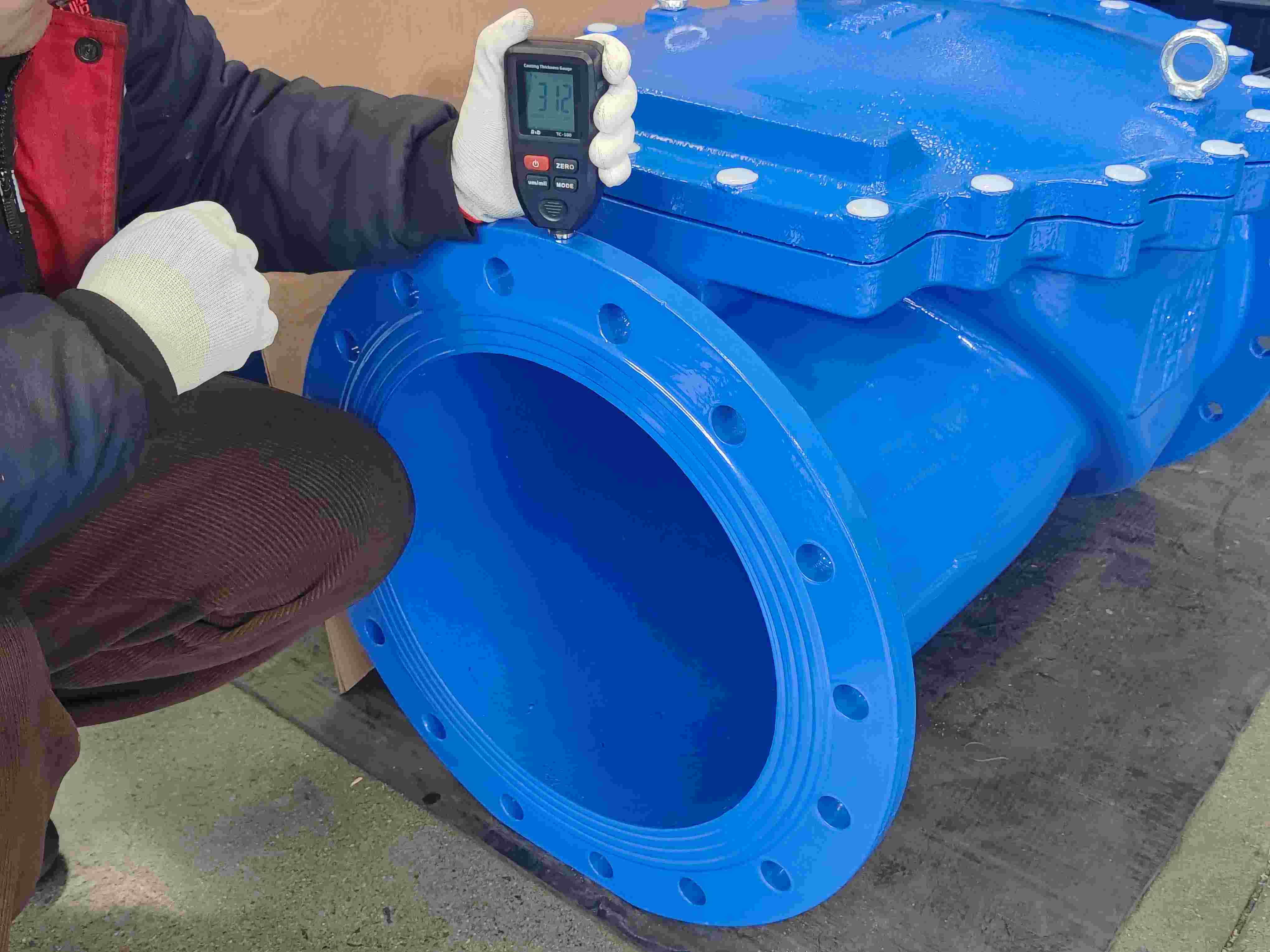 每个阀门喷涂完都进行表面涂层检测,确保表面涂层合格完整.